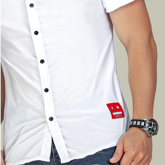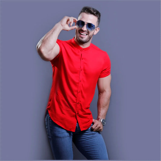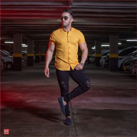Camisa Manga Corta Dorado Extrusión Cuello Mao