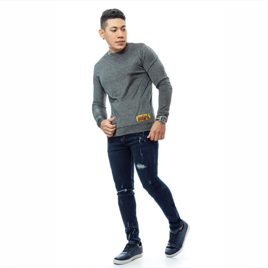 Camisa Manga Corta Galleta Gris Cuello Mao