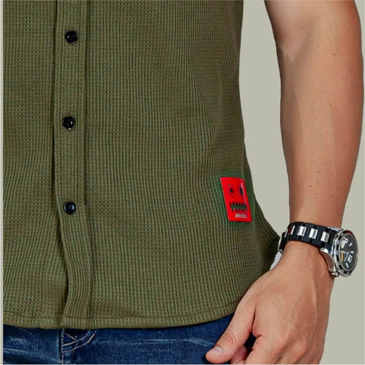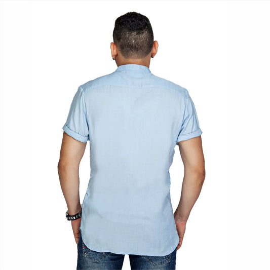 Camisa Manga Corta Galleta Verde Cuello Mao