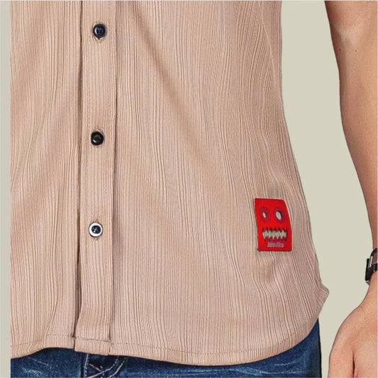 Camisa Manga Corta Galleta Beige Cuello Mao